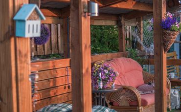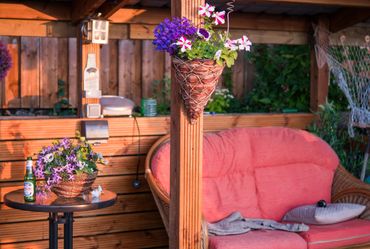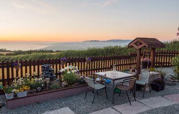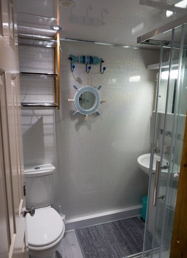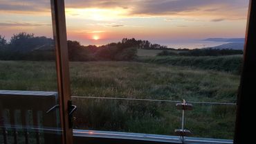 Stunning holiday cabin situated on the owner's grounds, located just half a mile from the seaside village of Borth in West Wales, 7 miles from Aberystwyth. This beautiful air-conditioned, double-glazed wooden cabin has everything you could possibly desire in a holiday destination. Comfortably sleeps 2 adults and 2 children with compact double and twin bedrooms. All rooms have independent heating control for preferential comfort. Cabin boasts a large west-facing decked balcony, with unobscured views across the North Wales mountains and Cardigan Bay - the position just couldn't be any better. The cabin is furnished and maintained to the highest standard and the rental includes clean bed linen and electricity , 1 towel will be provided per guest on arrival .The entrance lobby has a seating area/small breakfast bar with a large window, washing machine and plenty of storage space. There is a large open plan lounge/kitchen/dining area, with patio doors leading onto the undercover balcony. There are 2 large comfy leather sofas, a wall mounted 48" smart tv + Blu-ray, Alexa media unit, air-conditioning and occasional tables with table lamps for that homely feel. The kitchen is fully fitted with fridge freezer, dishwasher, full sized oven and microwave. There are 2 bedrooms: the master has a very comfy 4ft double bed with large west facing windows, wall mounted TV, and ample storage; the second bedroom has 2 comfy twin beds (2ft 6"), wall mounted TV, bedside table with table lamp and a quirky porthole window overlooking green fields. There is a modern toilet/shower room with heated towel rail (please note - no bath). With four-legged friends in mind the cabin has cushion flooring throughout. Outside we have a second undercover dining/chillout area with phone charging points overlooking the water feature garden, and full panoramic views of sea and mountains - this is a fully-enclosed safe private space ideal for children and pets. Please note that there are steps down to the property so unfortunately we have no disabled access at this present time
